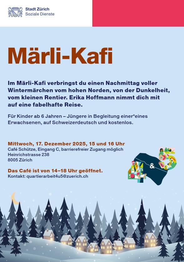 Beim Domino Dunschtig erwarten euch nicht nur spannende Domino-Partien, sondern auch Schach und weitere Gesellschaftsspiele - ideal für Gross und Klein! Immer am 1. und 3. Donnerstag im Monat von 15-18 Uhr, siehe Daten. Gratis und ohne Anmeldung. Spiele sind vorhanden. Adresse: Café Schütze Heinrichstrasse 238 8005 Zürich Das Quartierzentrum ist barrierefrei zugänglich. Bei Fragen […]